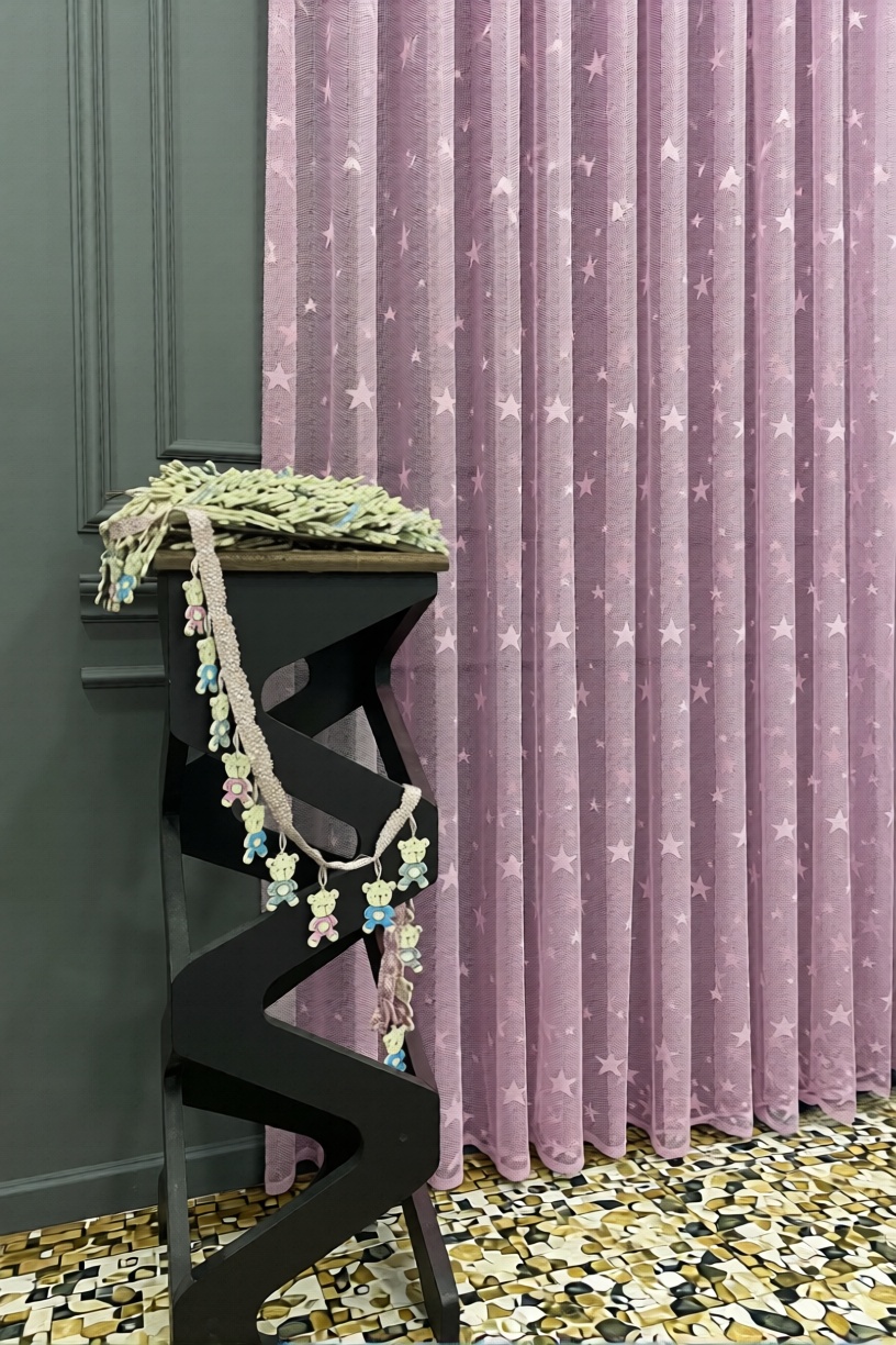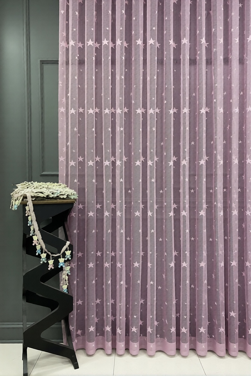 Pardes Yıldızlı Tül Perdesi, sevimli yıldız desenleriyle çocuk odalarına neşe, pembe tonuyla ise yumuşaklık ve huzur katıyor. Hem göz alıcı hem de kullanımı son derece pratik!